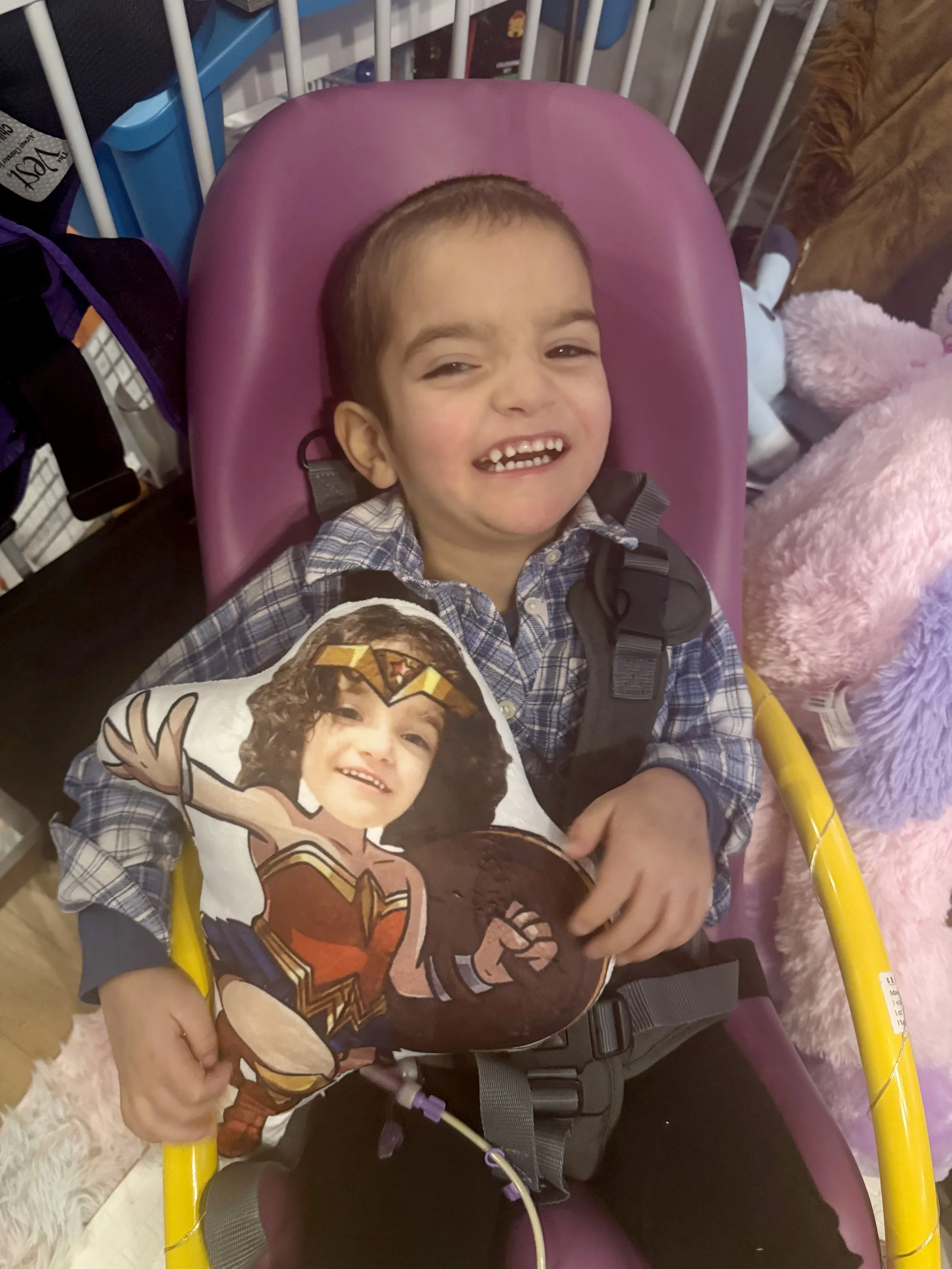 We believe that Charley’s purpose in the world is to teach people empathy and bring joy to those around her. She loves Bluey, reading, Moana, and her big brother. She is nonverbal and expresses herself primarily through facial expressions – she is a very happy kid, so you will most often see her grinning from ear to ear. She loves music and musical instruments and is very social and affectionate. She uses a wheelchair to get around and is relearning a lot of her former skills since her development regressed quite a bit following her first brain surgery.